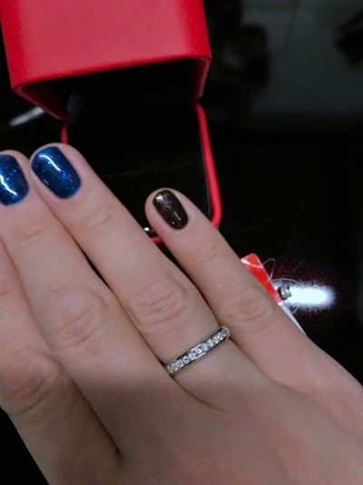 Красивое кольцо, но на фото выглядит более широким. Размер немного большемерит, мне показалось. Всегда ношу 17, а здесь свободно. В описании каратность 0,29, в моем 17 размере 0,27((( вообщем, вау эффекта нет, для новогоднего подарка сойдет))