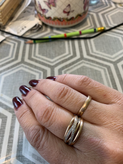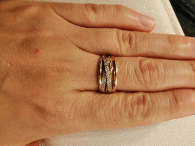 Колечко объемное,интересный дизайн,хорошо смотрится с обручалкой