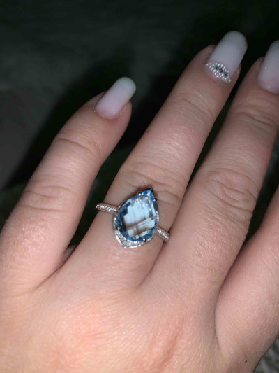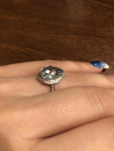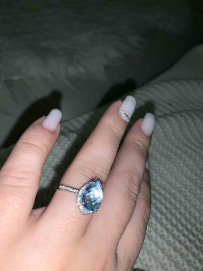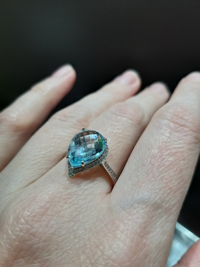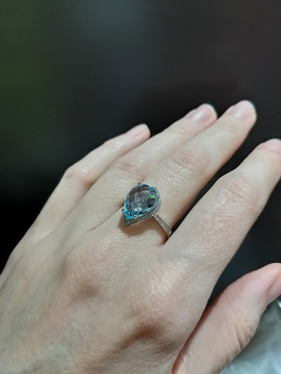 Колечко увидела на сайте,девочки в магазине предложили его заказать, что я и сделала. Топаз в белом золоте с бриллиантиками очень красиво смотрится. Колечко супер!Благодарю)