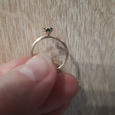Кольцо с гидротермальным изумрудом весом 0.216 карата. Оно изготовлено из розового золота 585 пробы, что придает ему особый шарм.