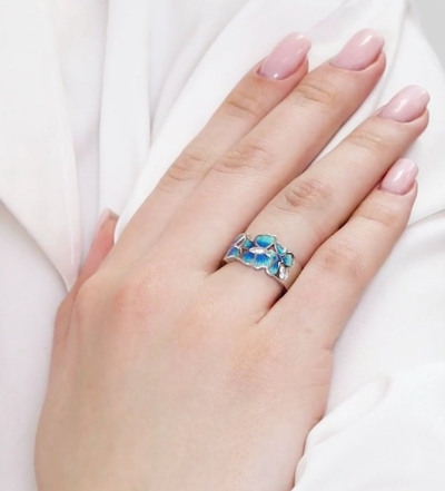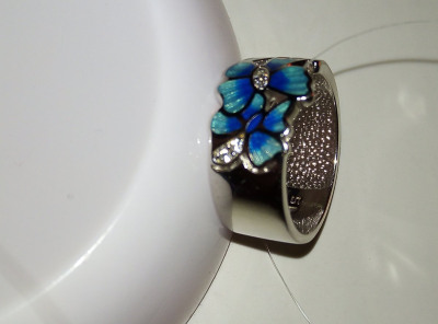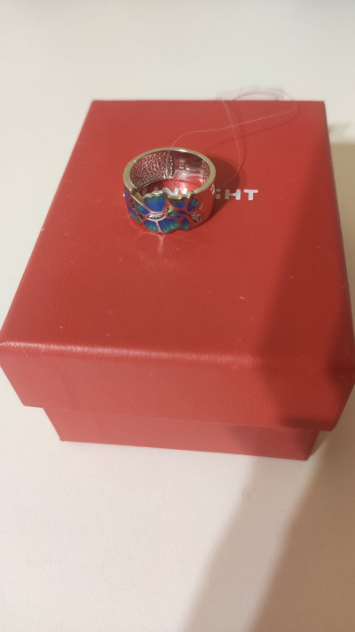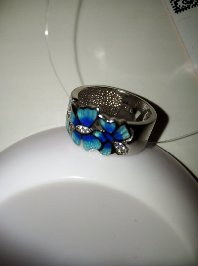 Серебряное кольцо с изумительными бабочками. Яркая эмаль и сверкающие фианитики. Размер соответствует. Очень стильное модное кольцо! Рекомендую!