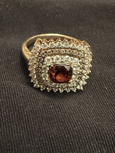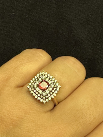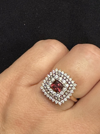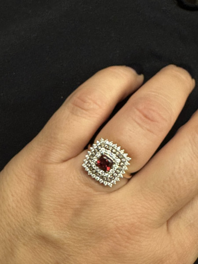 Очень красивое кольцо! Яркий гранат и бриллианты коньячные и белые!Все сверкает! Мне повезло и я приобрела с комплектными серьгами! Улетное украшение. Спасибо💖