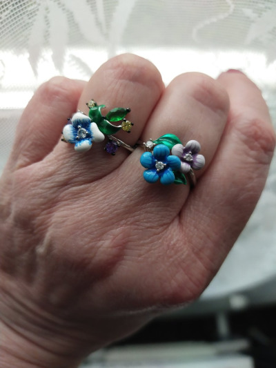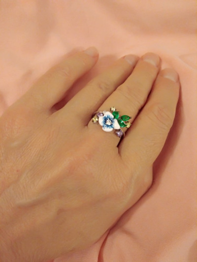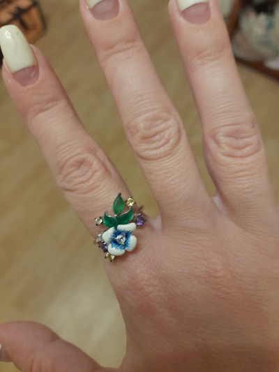 Кольцо-Фиалка покупалось в дополнение к таким же серьгам. Произведение ювелирного искусства!