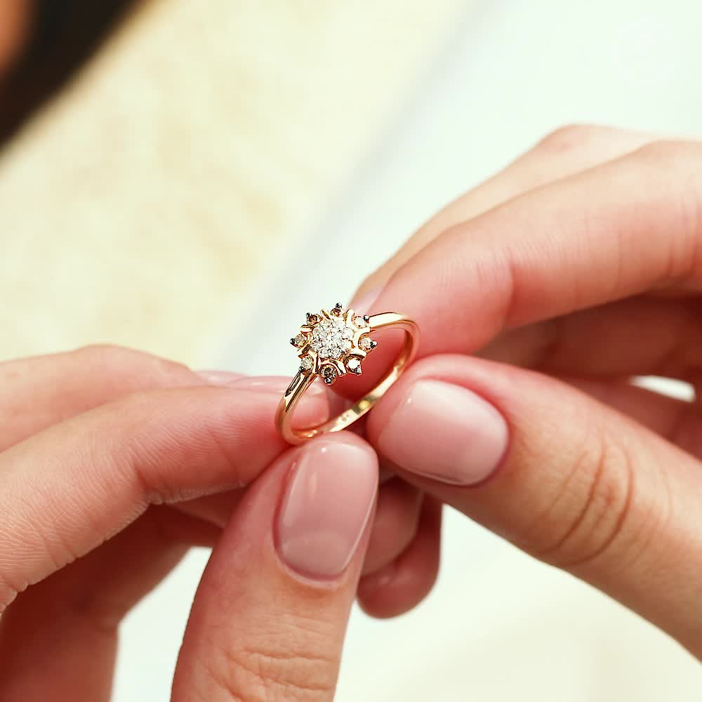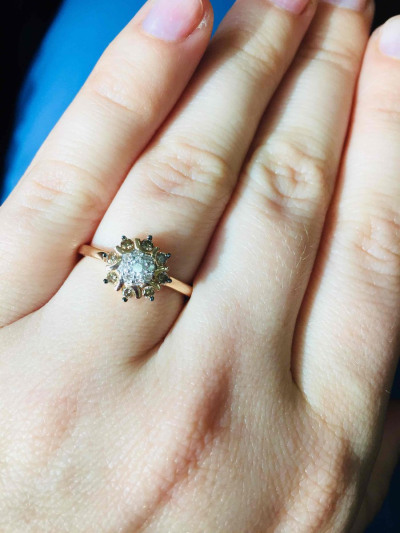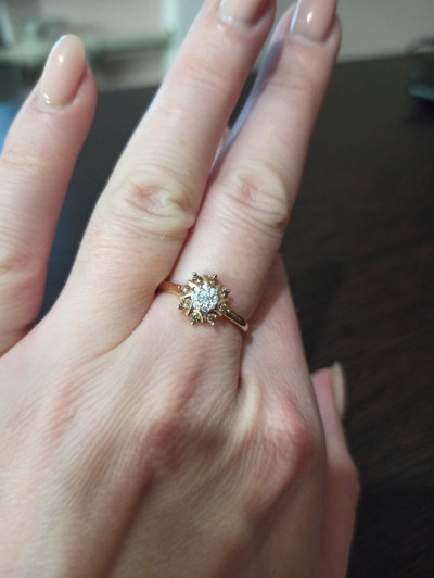 Незаслуженно это кольцо обходят вниманием! На какие то кольца прям ожиотаж из коллекции "шоколад" а на это ни одного отзыва! А зря друзья!!!!!! Оно волшебно: прекрасный распустившийся цветок, который никогда не завянет! Бриллианты сверкают, не цепляется ни за что не смотря на лапки крапаны у "лепестков"😄 Муж меня балует☺️подарил на рождение дочери украшения, одно из которых это кольцо, налюбоваться не могу!