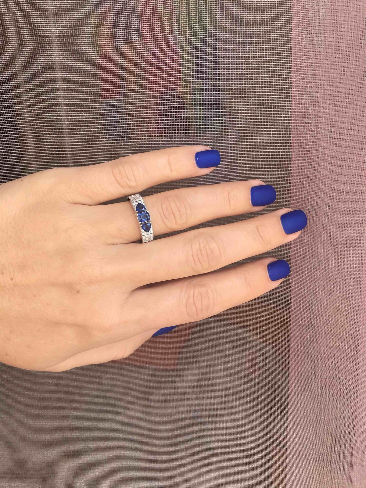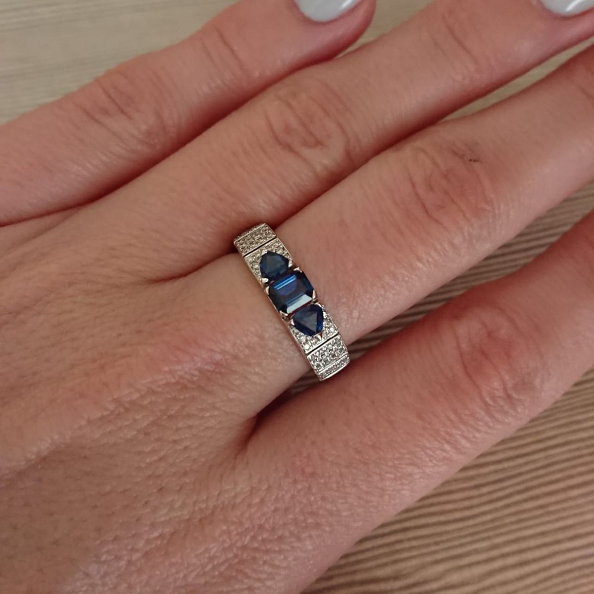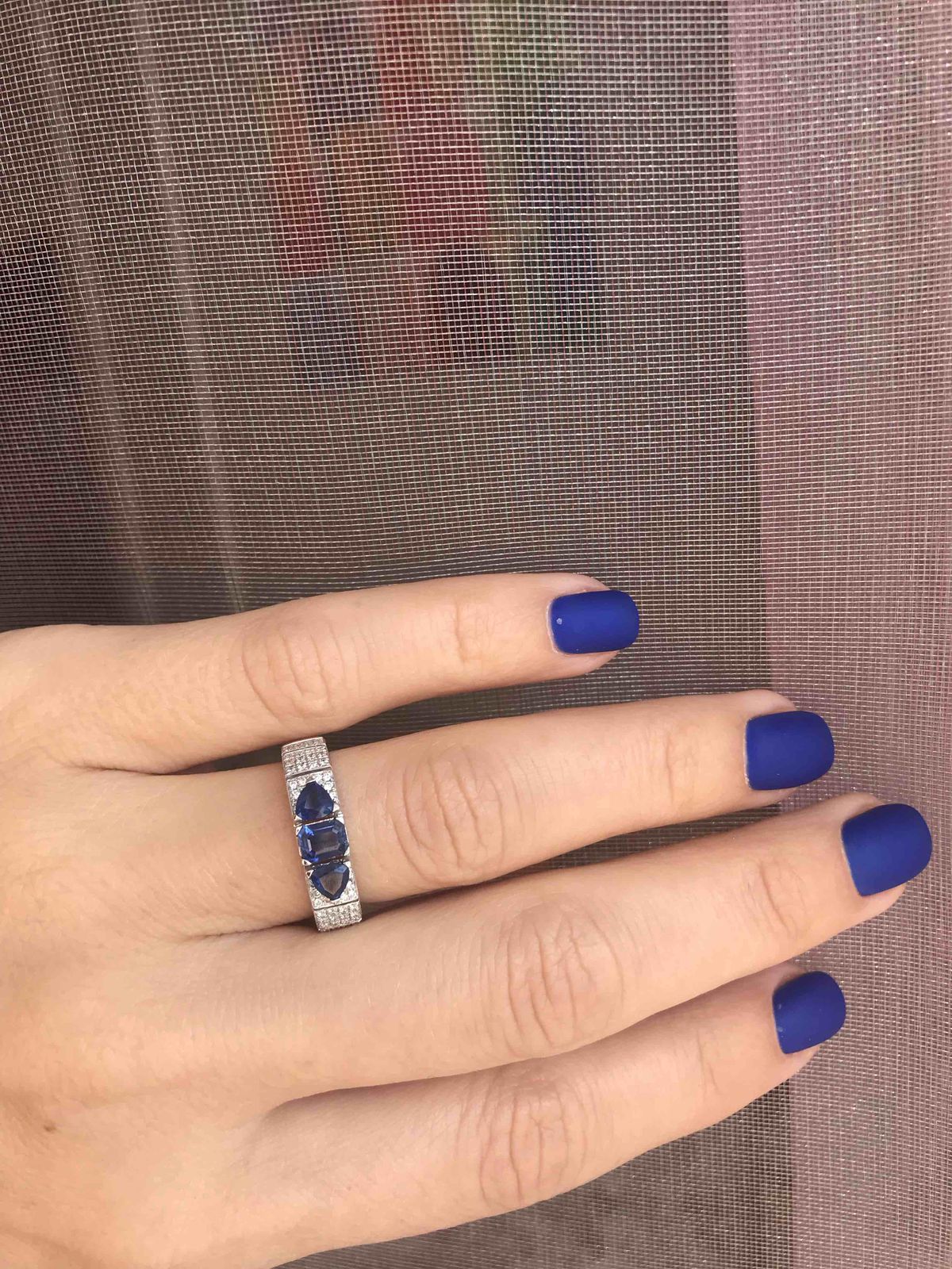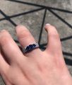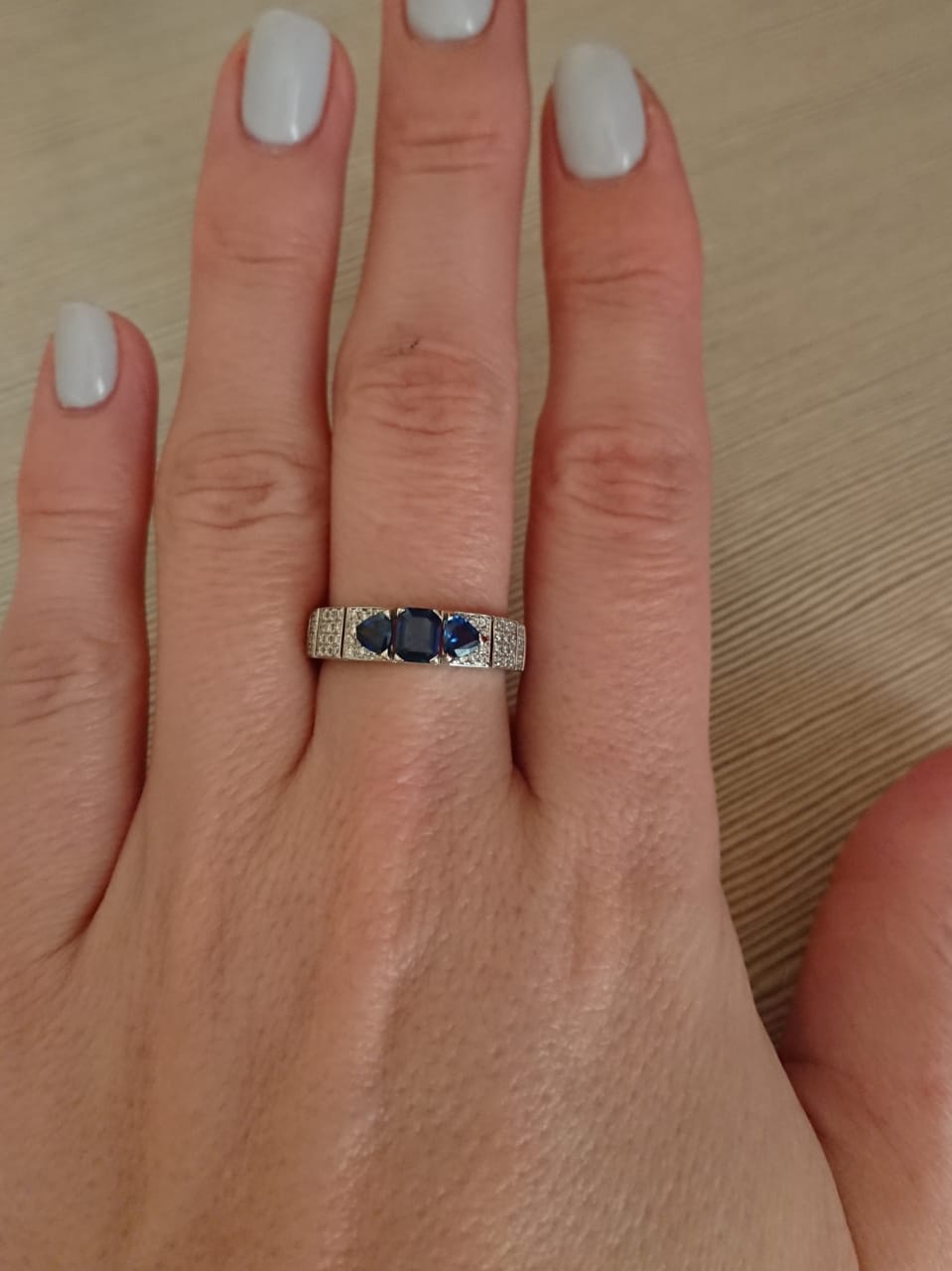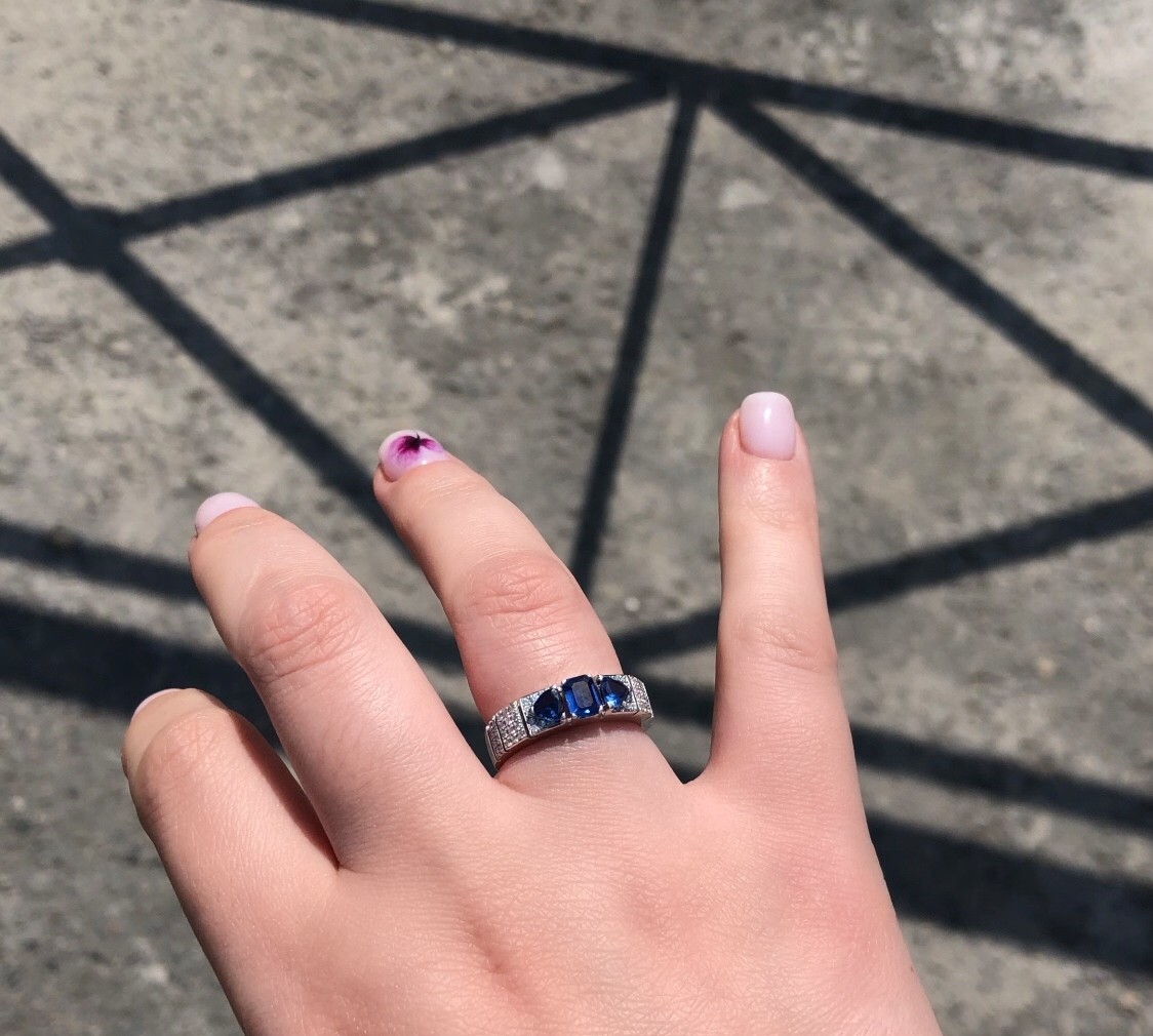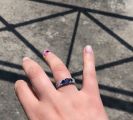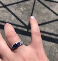 К сожалению кольцо видимо с браком попалось, сапфир самый большой который в середине выпал, где выпал как выпал не понятно, приехала с работы, а камня нет. ладно бы была работа где могла бы зацепить или еще что то, но так то сижу за компом целый день. Хотела серьги ещё к кольцу купить, теперь уже сомневаюсь. Кольцо смотрится шикарно.