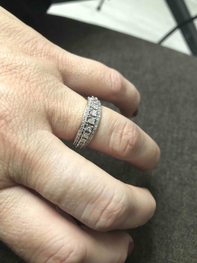 Кольцо великолепное! С учетом скидки и каратности - очень выгодно. Смотрится достойно, ни за что не цепляется, размер в размер.