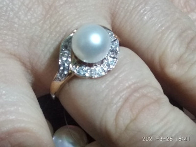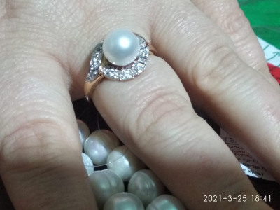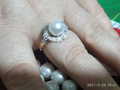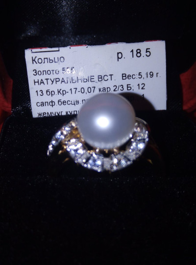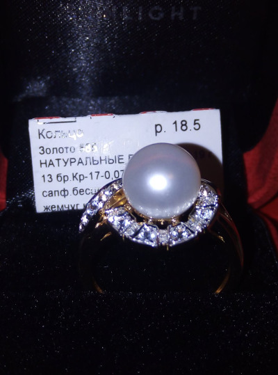 Очень люблю жемчуг. Нежно обвивают благородные природные сапфиры и бриллианты крупную жемчужену. На пальце сидит очень удобно. Какое наслаждение быть обладателем такого красивого изделия!