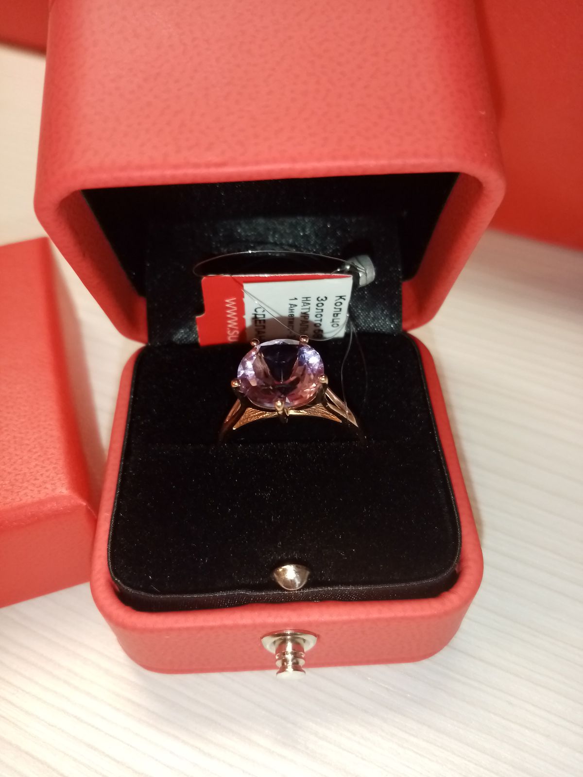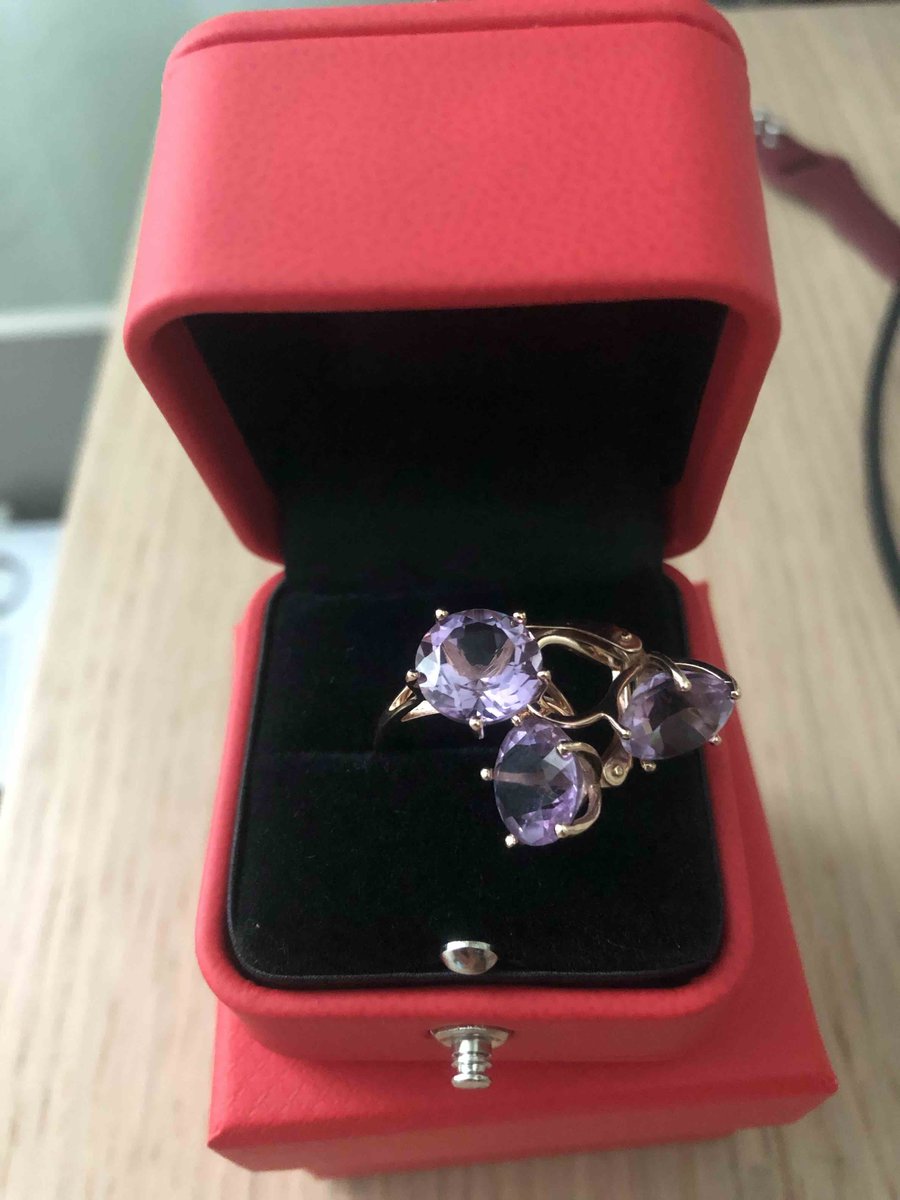 Кольцо получила в подарок на юбилей, изящное, потрясающее, блестящее, огранка аметиста сверкает и переливается! я в восторге!