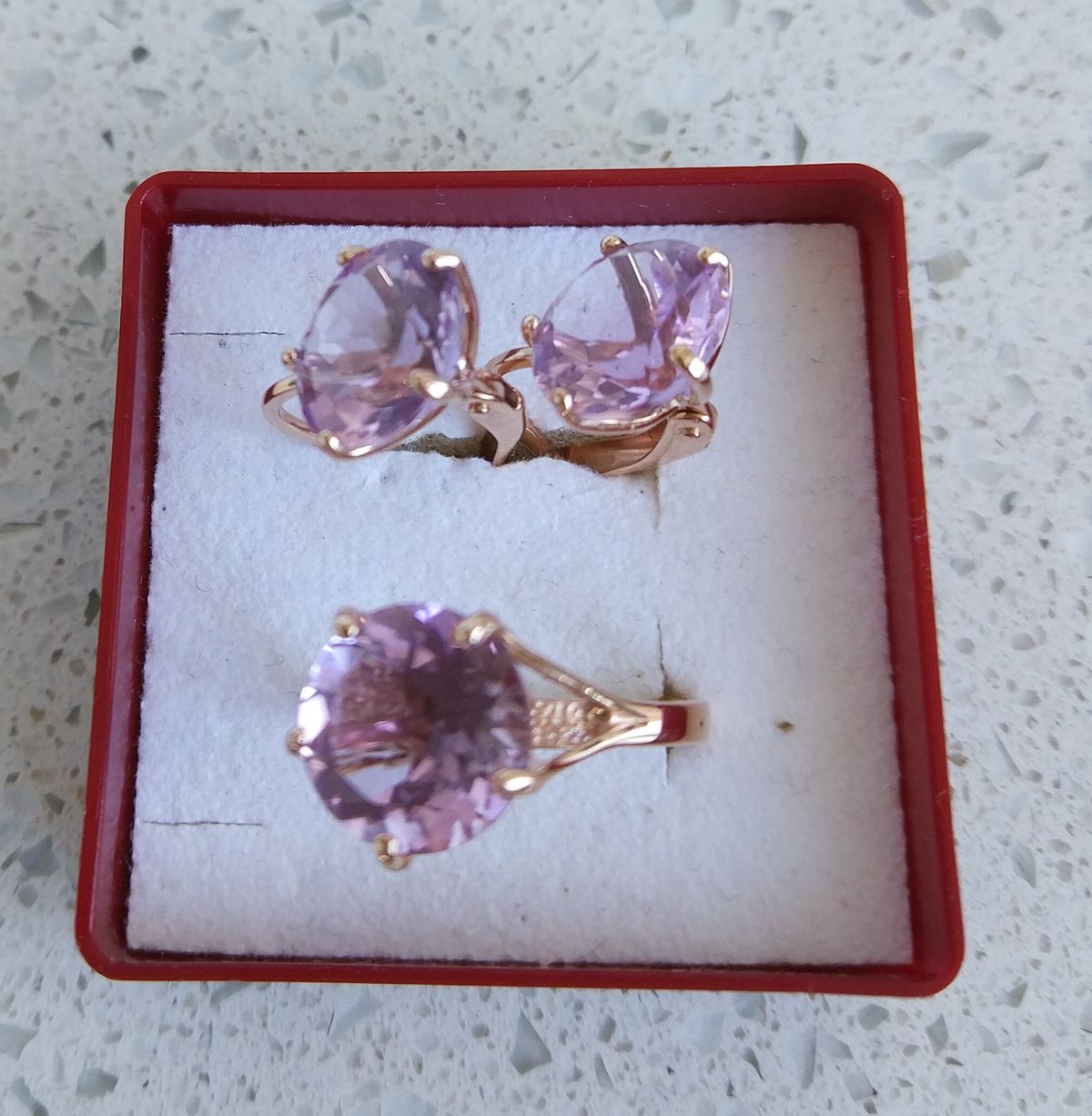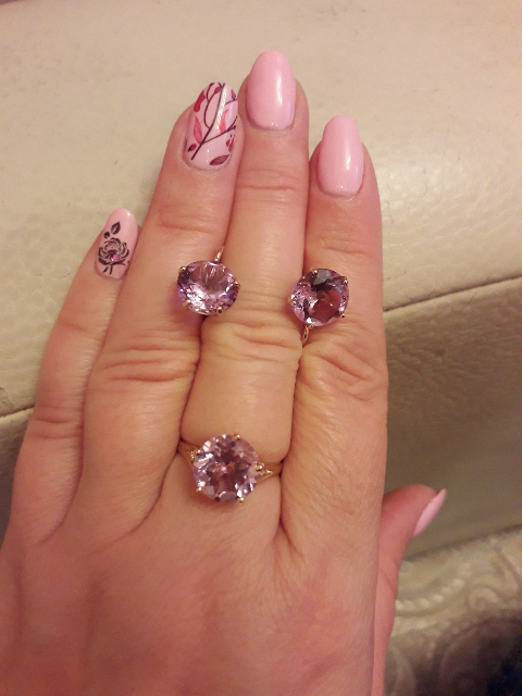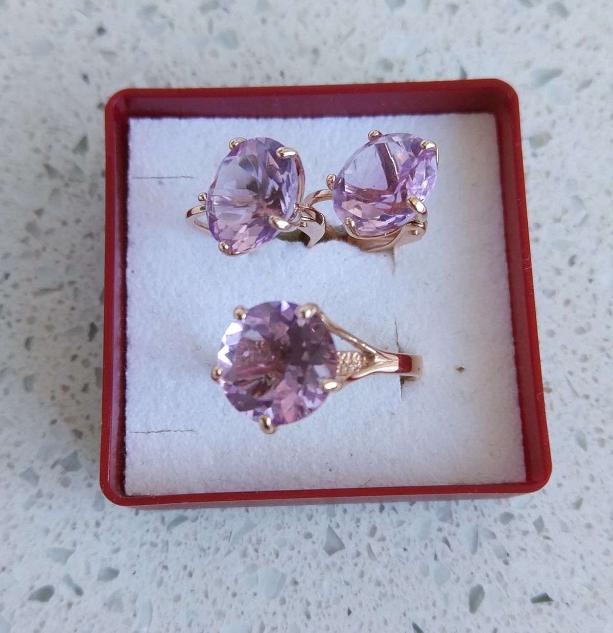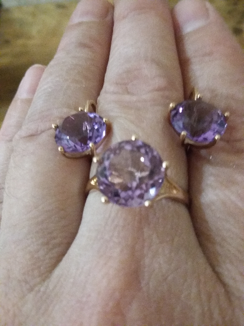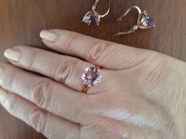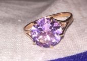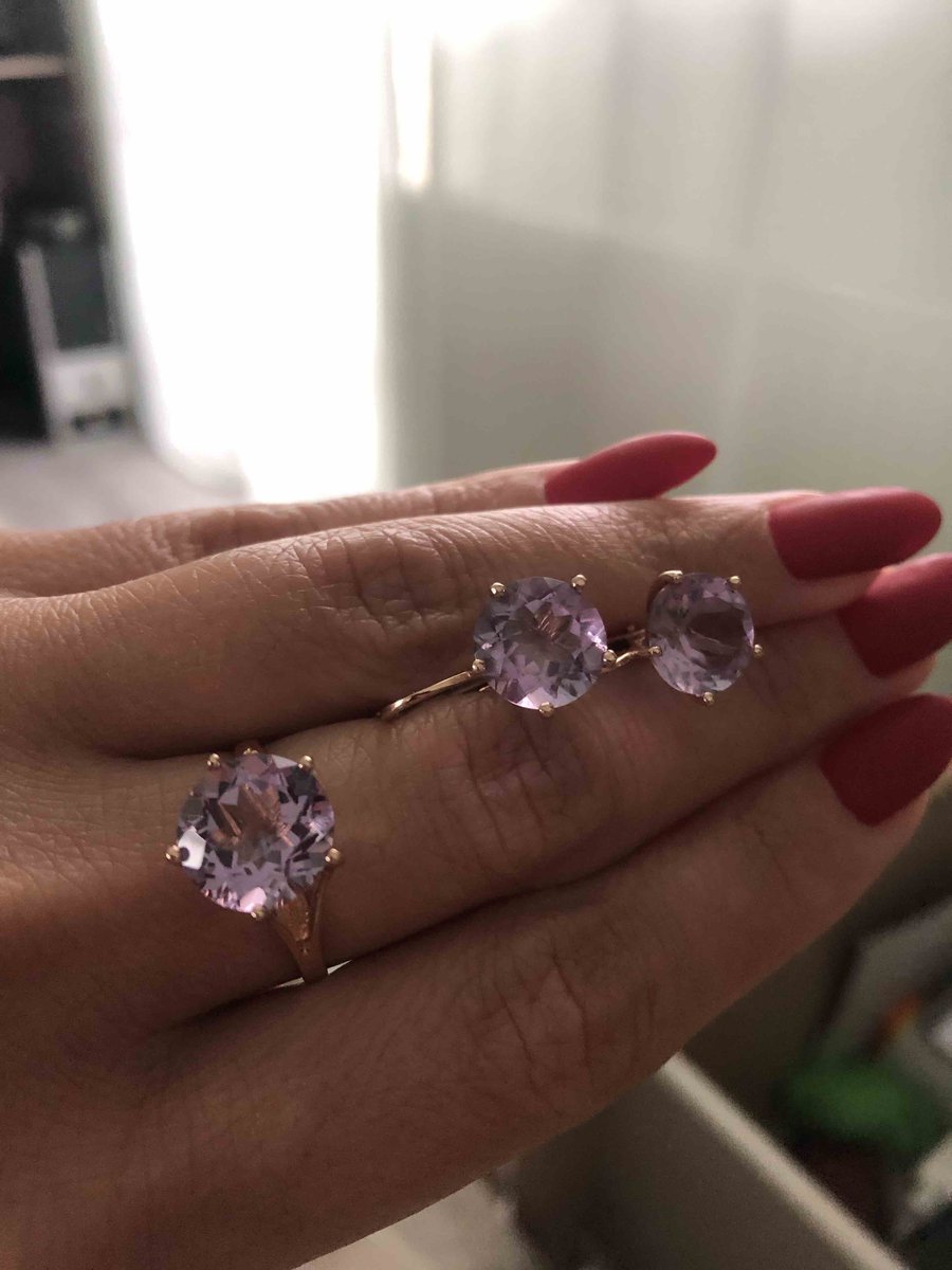Чудесное колечко! Аметист крупный, 3 карата, в тонкой, золотой оправе. Вместе с аналогичными сережками составляет изящный, элегантный комплект. Очень довольна! Большое спасибо!