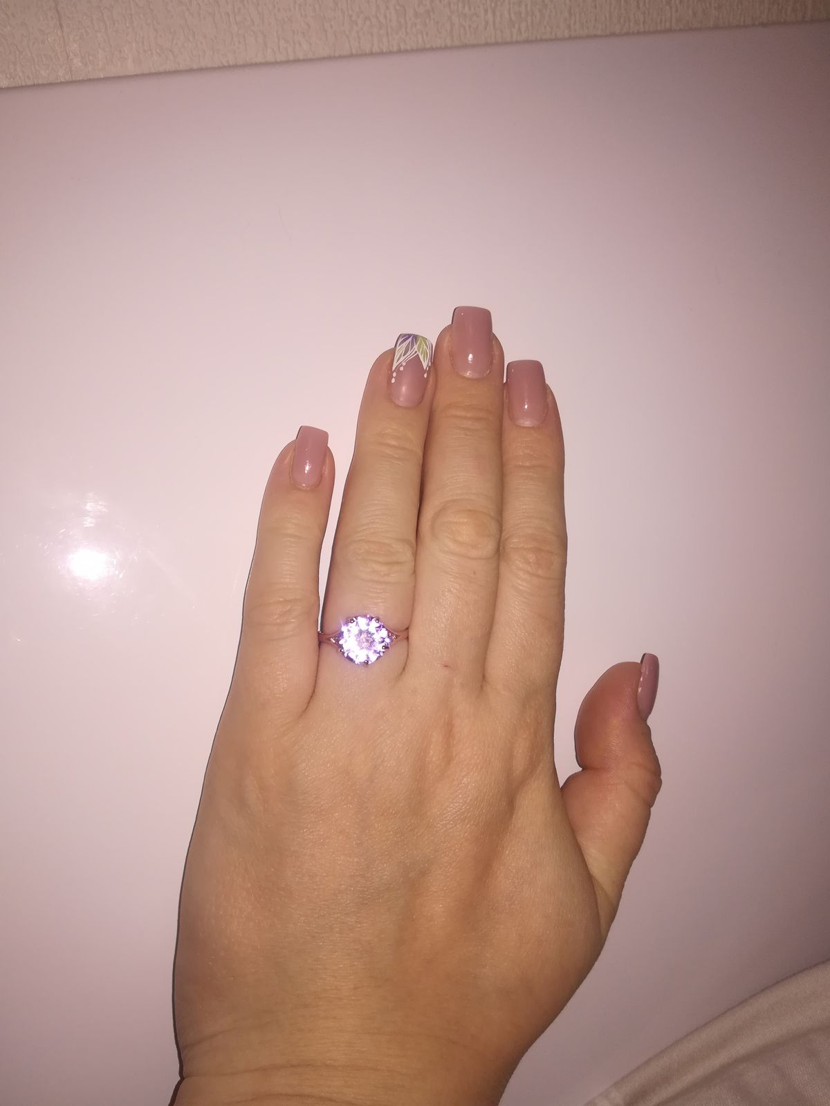 Колечко прекрасное,очень нежно смотрится. Аметист очень красиво смотрится. В комплекте с сережками просто супер. Правда размер немного меньше,чем другое кольцо таково же размера.