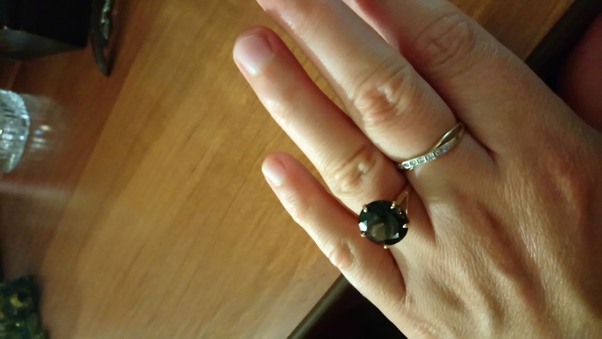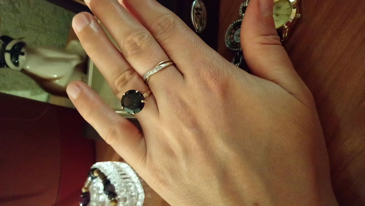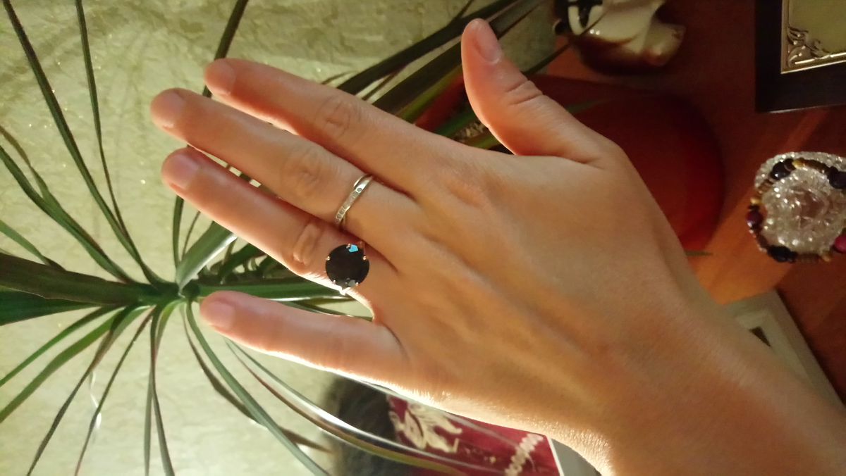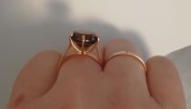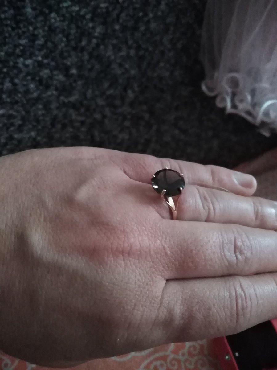 Не ожидала что раухтопаз так зачарует, в приложении и на фото все совсем не так, как в реале и на пальце. Камень тёмный шоколад с золотистыми искрами. Удобное, высокое, не цепляет, качественно выполнено, не тонкое. Мне оно очень понравилось, померила, а на следующий день поехала и купила.