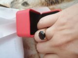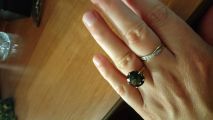Прекрасное кольцо,для тех кого не смущают размеры камня больше чем карат.Очень лаконичное ,на первом и единственном плане сам камень,вопреки всему камень не смотрится громоздким,легко ощущается не руке,не ощущается.Камень чудесный,прекрасный цвет,огранка.
