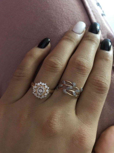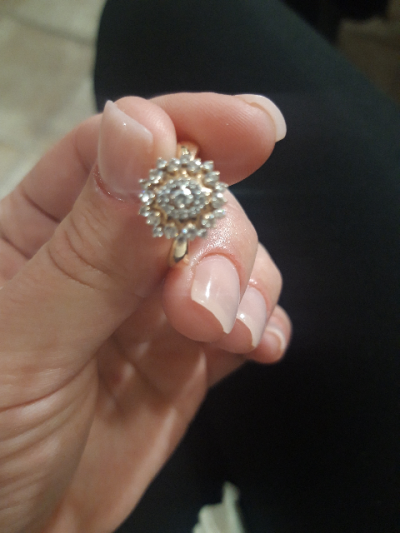 Колечко интересное, в виде снежинки. Покупалось года 2 тому назад, камушки на месте, за одежду не цепляется. Покупкой довольна.