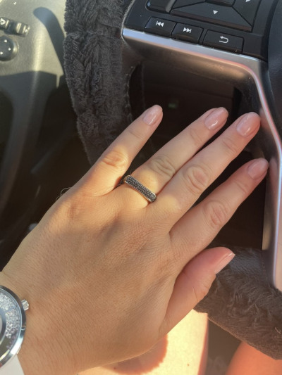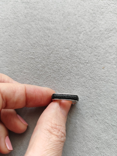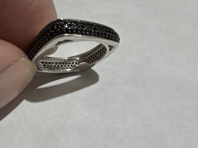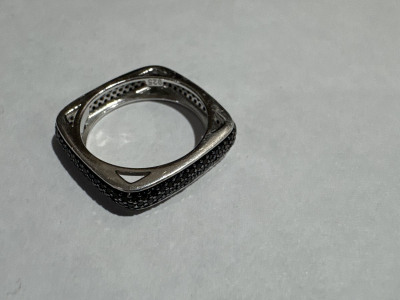 Черные фианиты в серебре , кольцо квадратной формы очень удобное в носке .