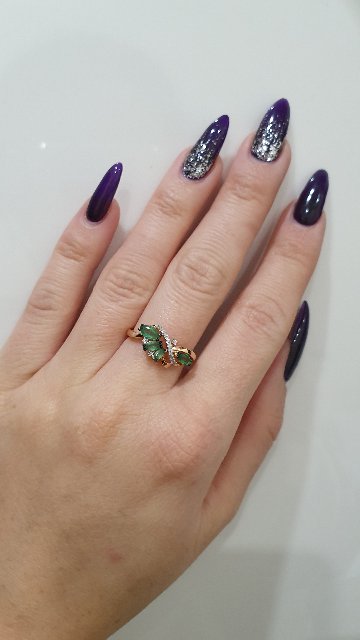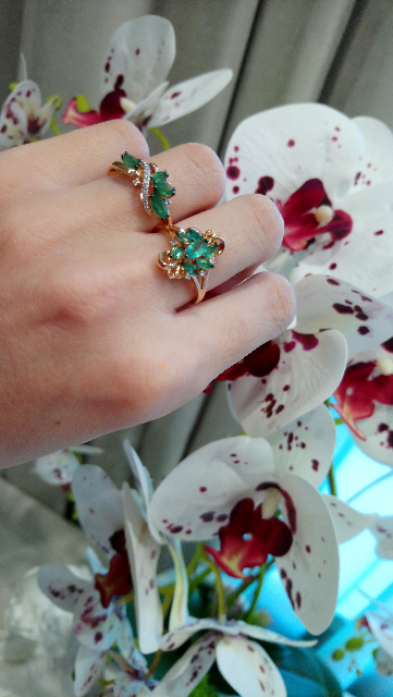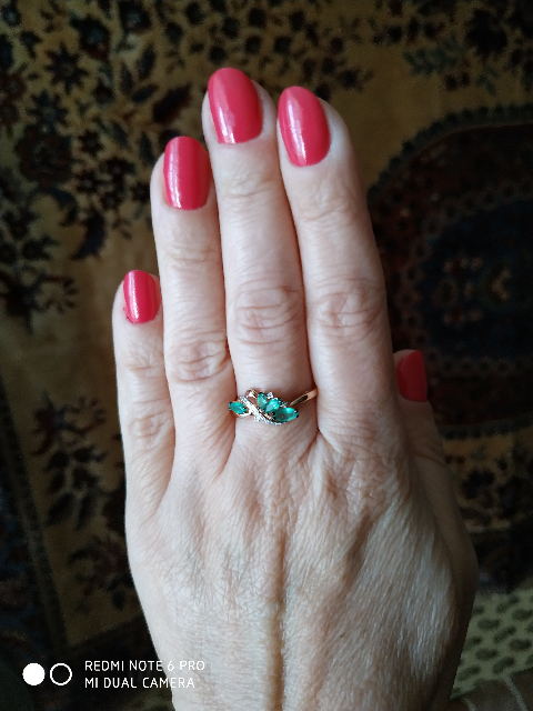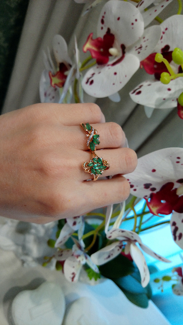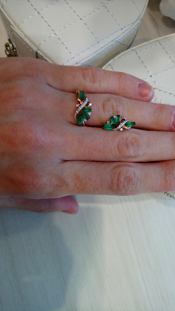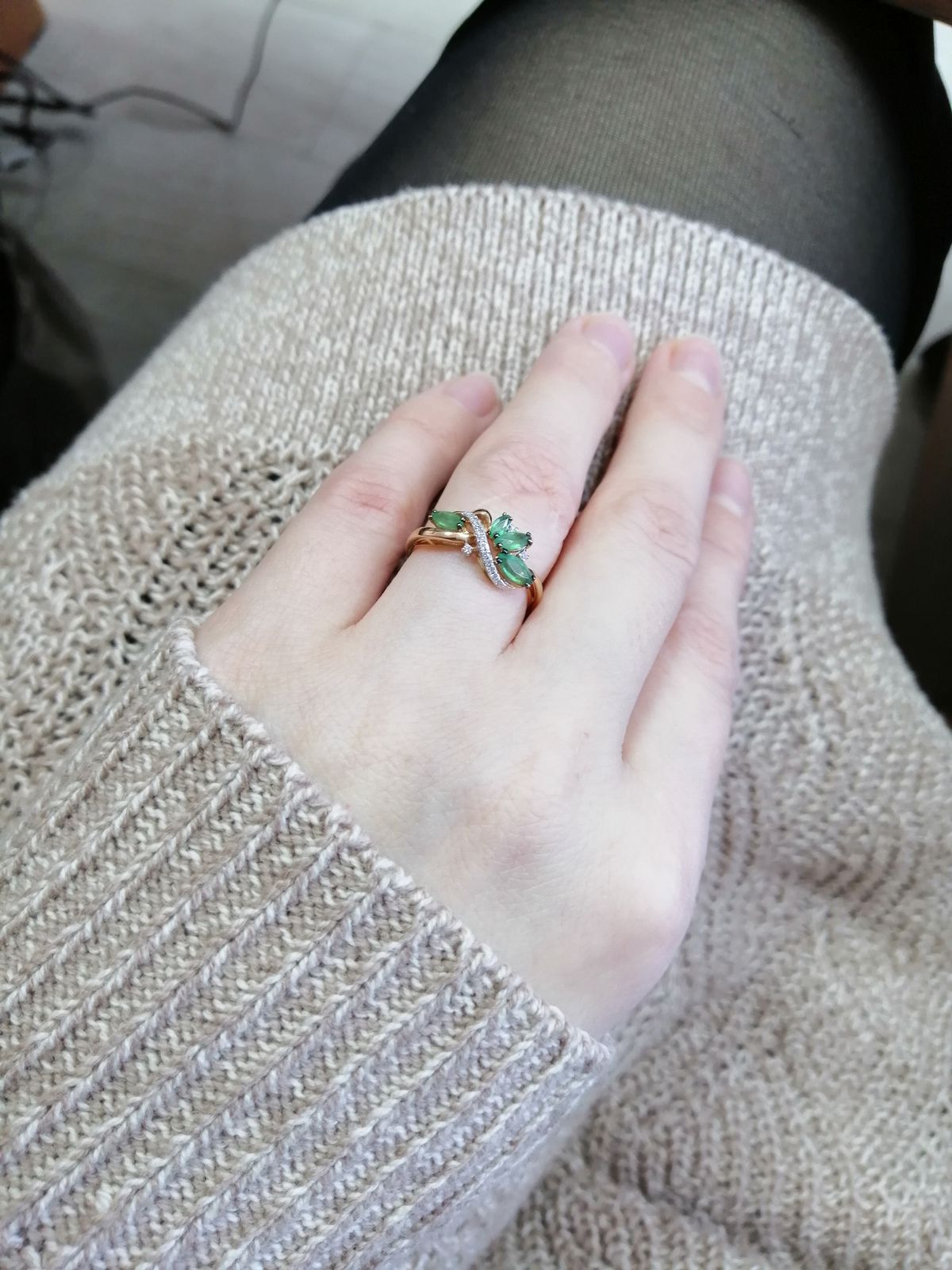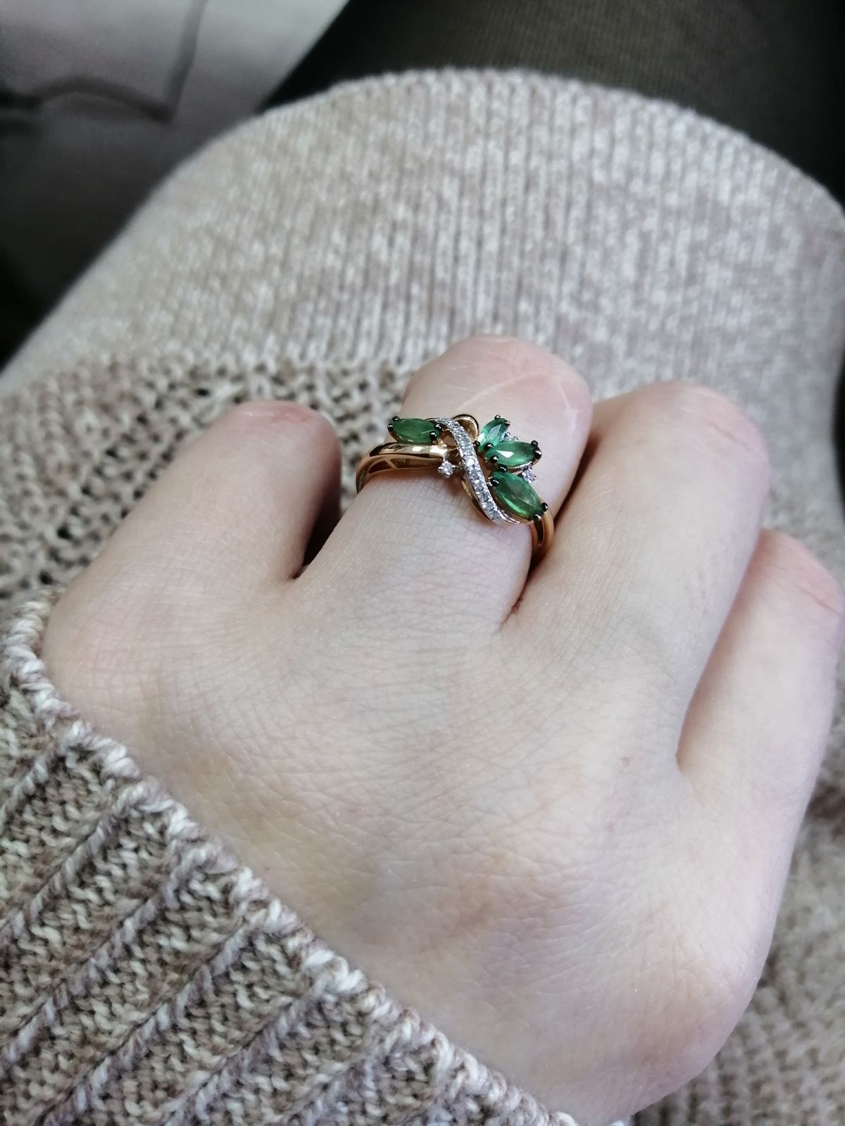 Любимый человек выбрал это кольцо в качестве помолвочного. Сказать, что я в восторге, это ничего не сказать. Кольцо изящное и трогательное, на палец село идеально, думаю и жизнь наша с моим мужчиной, будет такой же сказочной, и волшебной, как мерцание этих изумрудов в россыпи бриллиантов!