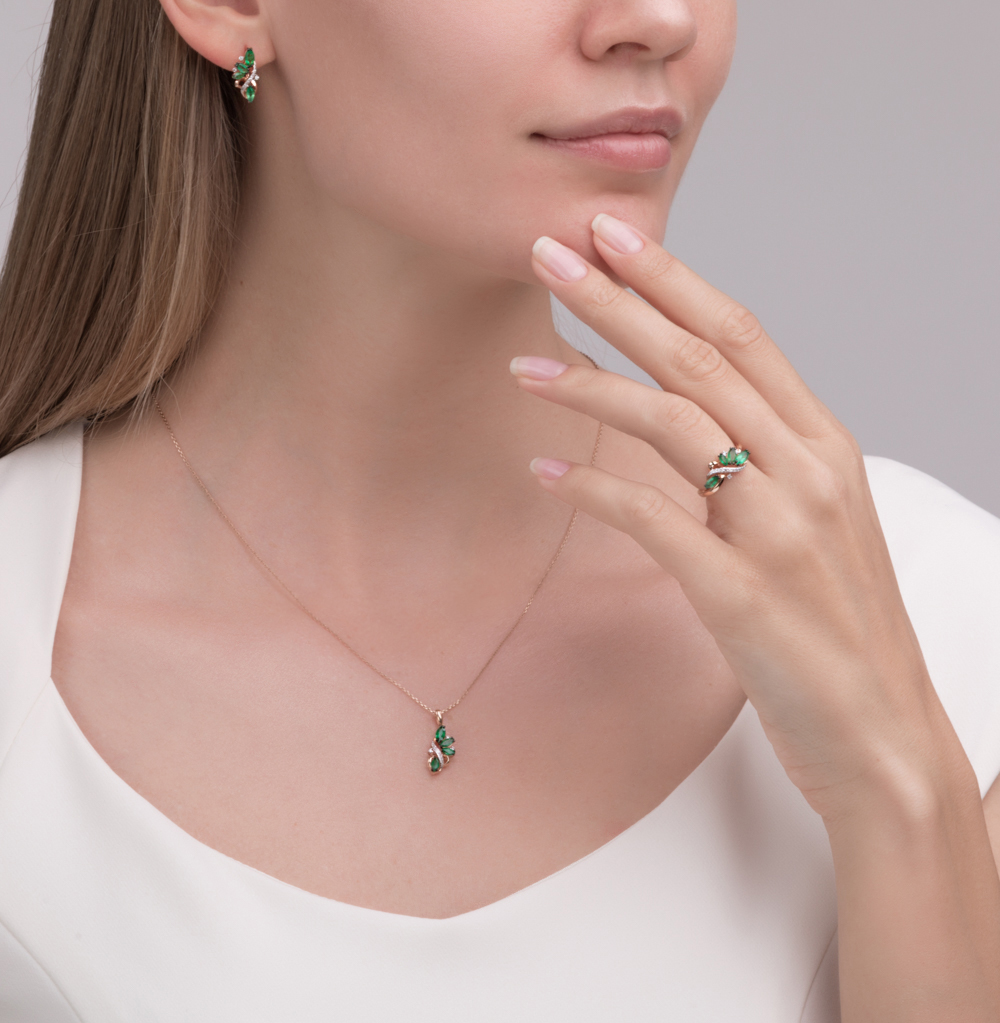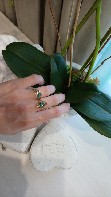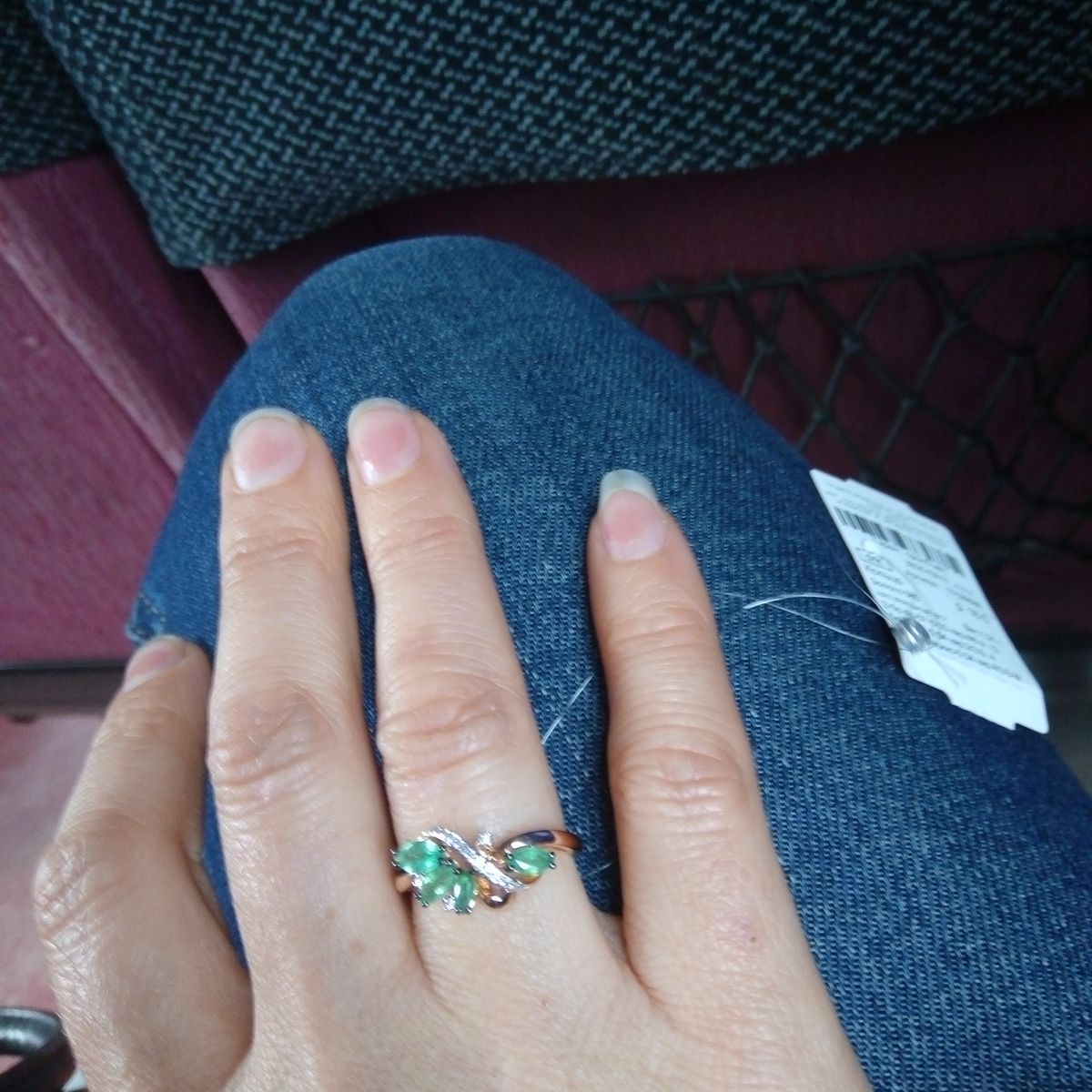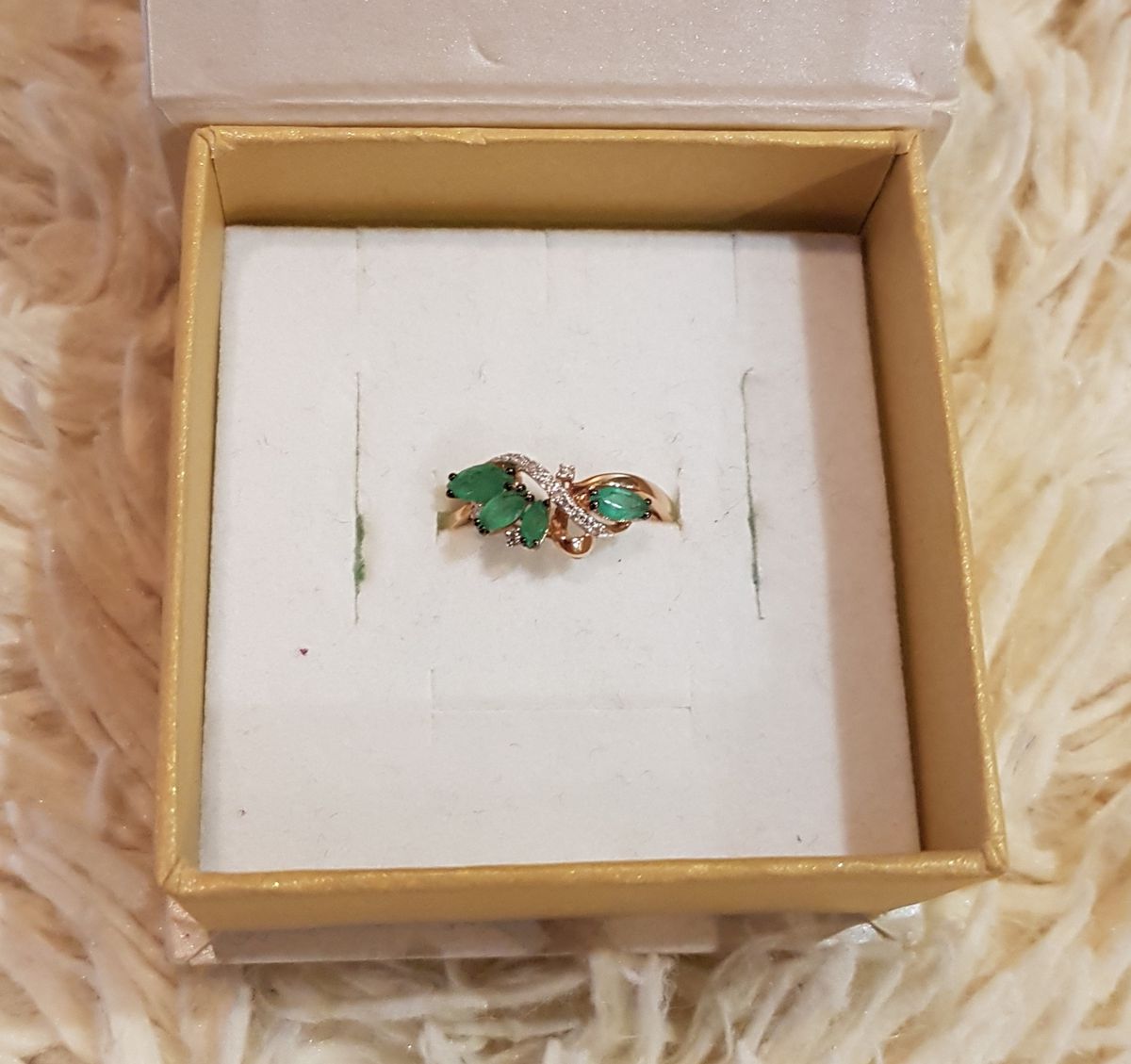 Любимый человек выбрал это кольцо в качестве помолвочного. Сказать, что я в восторге, это ничего не сказать. Кольцо изящное и трогательное, на палец село идеально, думаю и жизнь наша с моим мужчиной, будет такой же сказочной, и волшебной, как мерцание этих изумрудов в россыпи бриллиантов!