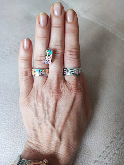Брала комплект- кольцо и серьги. Смотрятся очень стильно.