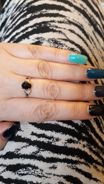Долго искала кольцо, хотела именно с черным камнем. Увидела на сайте и сразу кольцо меня очаровало). Именно то что надо! Интересно смотриться, нежно,привлекает внимание окружающих. Я очень довольна покупкой.