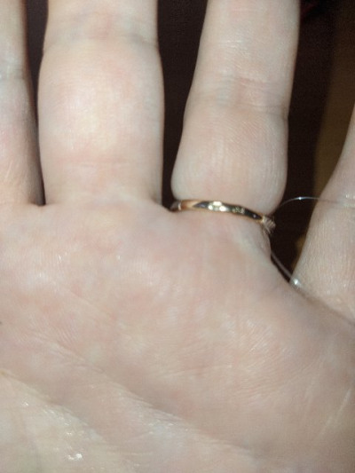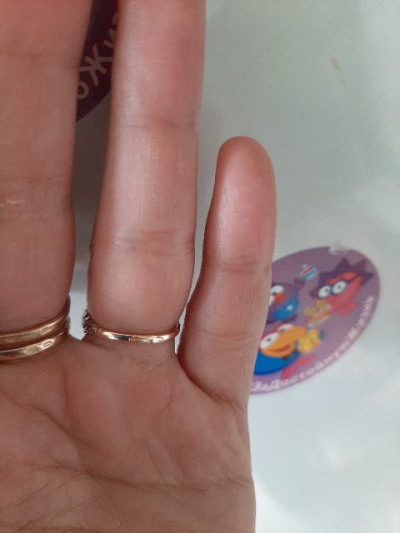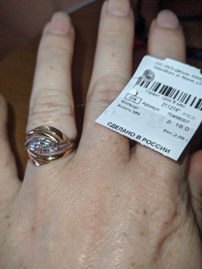 Кольцо сразу понравилось на фото сайта - загорелась покупкой! Люблю, когда в украшении нет лишнего - только золото. Жаль, были только мелкие размеры - на палец с размером 17 заказала кольцо с размером 16.5. Да, оно крутое! Но тесновато и создаёт видимость толстого пальца... Буду носить, но пальцы лучше смыкать на людях))) Я бы рекомендовала брать размер 18 или хотя бы 17.5 на палец с размером 17 😏