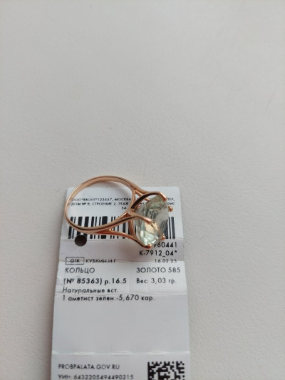 В редких случаях характеристики украшения или упаковка могут иметь отличия от представленных на фото или в описании.Кольцо с 1 аметистом зеленым, 6.08 карат;