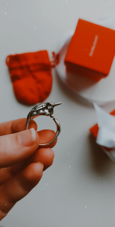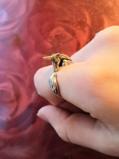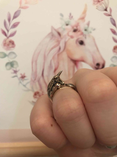 Кольцо Единорог выполнено обьемно и красиво смотрится на руке.