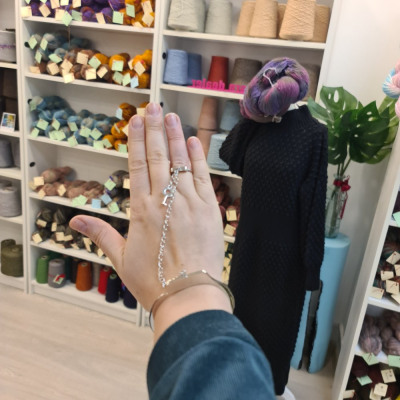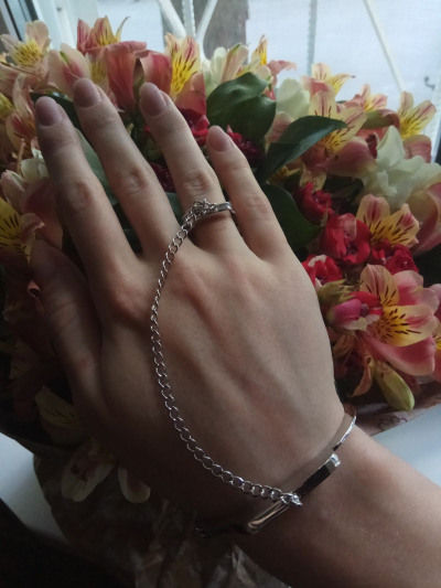 Размер указан для кольца,браслет регулируется по руке с помощью ключика. Браслет просто идеальный,не мешает за счёт длины цепочки.