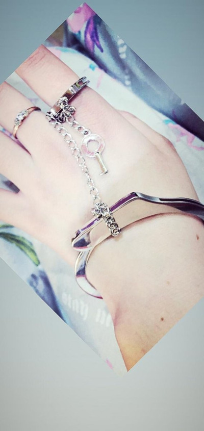 Купила в подарок сестре на д.р. Сие украшение. Очень смелое!парадно-выходное! Притягивает внимание! Браслет четко фиксируется, даже чуть-чуть туговато открывается (что не является минусом), так его точно не потеряете)) фото сделано во время покупки.