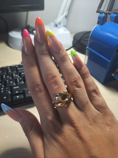 Колечко крупное оригинальный дизайн, лимонное золото, приятно округлой формы, не давит, не режет + фианиты (сверкает). Еще бы прикупить браслет. 😉