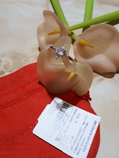 Колечко прелесть. Камень переливается синим, голубым и бесцветным блеском. Ещё блеск добавляют фианиты, они вокруг камня. Колечко лёгкое и не мешает. Подходит на каждый день.