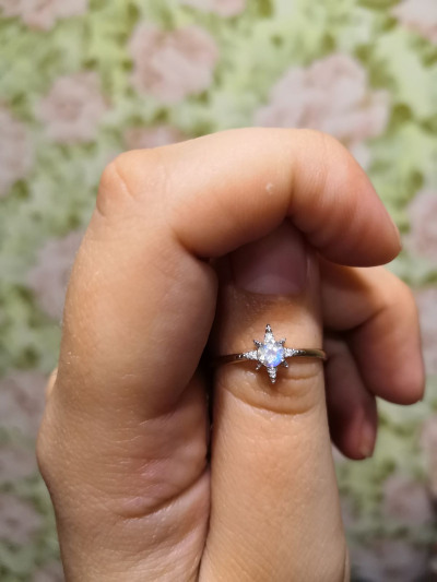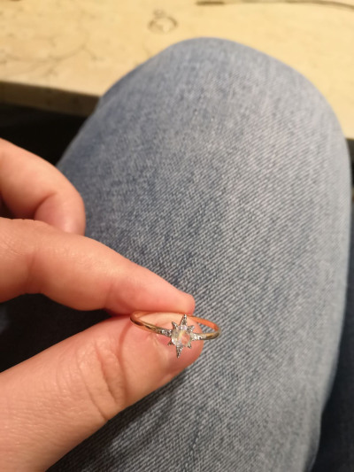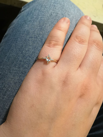Симпатичное колечко, думаю задумка именно в акценте на звёздочку с камушком, поэтому колечко достаточно тонкое.. Ещё бы серьги точно такие же сделали, было бы вообще супер👍