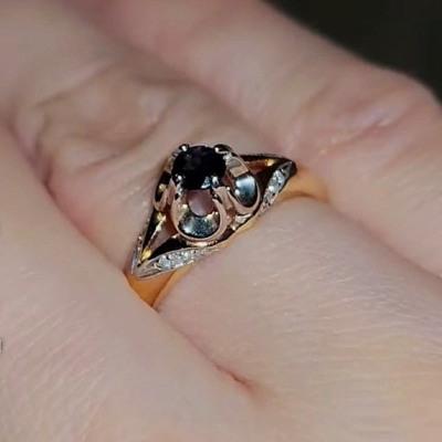 Колечко миниатюрное, дизайн напоминает советский, сапфир темный.