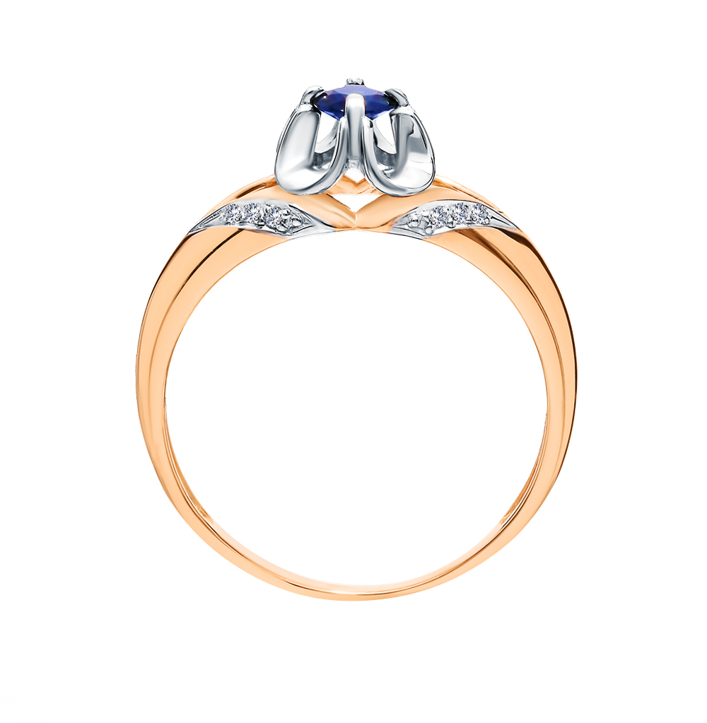 Золотое кольцо с бриллиантами природными и сапфирами природными