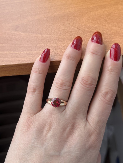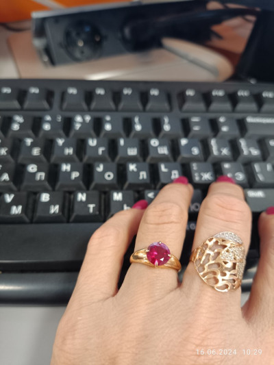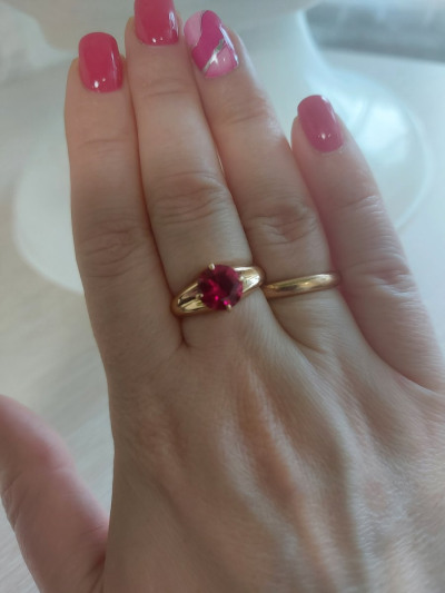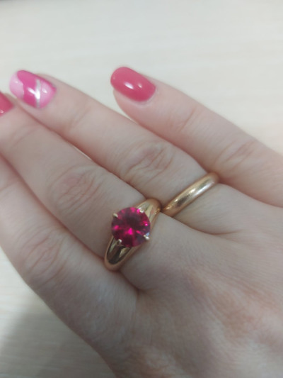 Классное кольцо, крупный яркий синтетический рубин, прочное, вес больше 3г, смотрится красиво, цвет рубина темнее, чем на фото