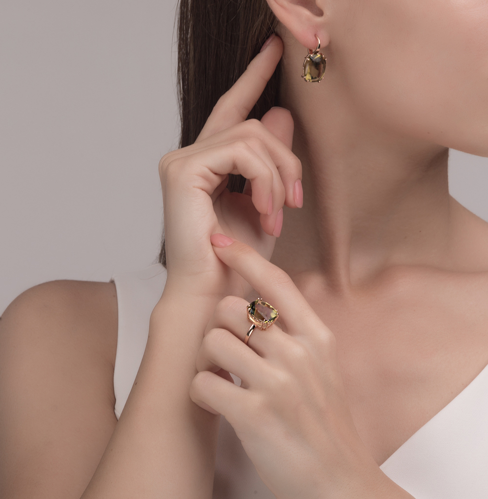 Золотое кольцо с кварцами природными