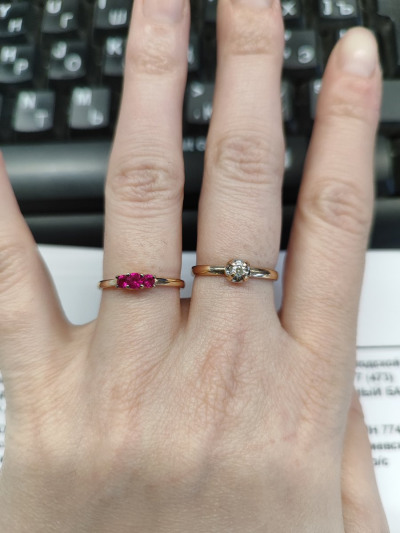 2 рубинами синтетическими, 0.15 карат, тип огранки В;