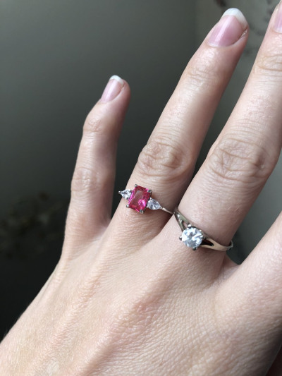 Розовый топаз смотрится красиво. Для меня кольцо прям летнее🍒