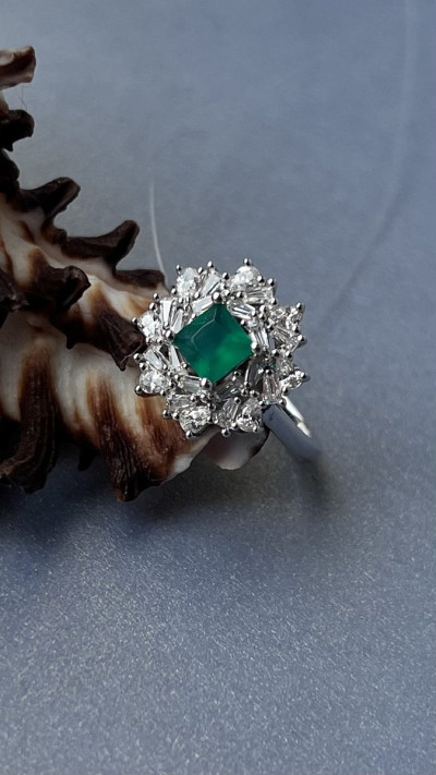 Необычно расположены фиониты вокруг агата. Шикарное кольцо.