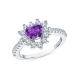 Серебряное кольцо с фианитами и аметистами природными