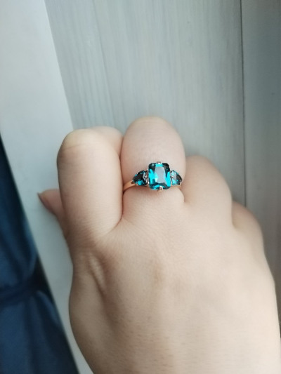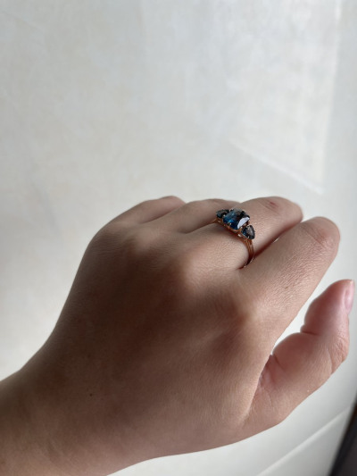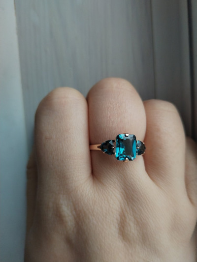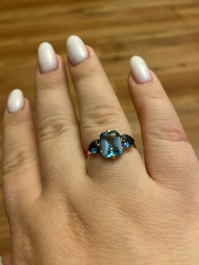 Кольцо с лондон топазом Очень красивое колечко, камни красиво играют, я очень довольна покупкой👍👍👍