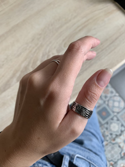 Шикарное кольцо , я бы так сказала просто бомбическое ,на коротких пальцах имено оно широкое смотрится офигенно,обычно широкие кольца на коротких не особо смотрятся ,а это суперское