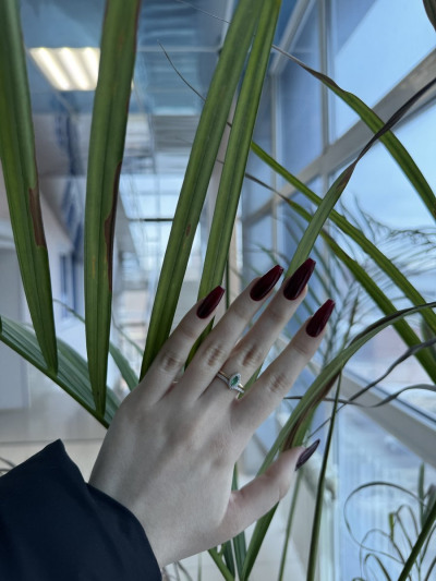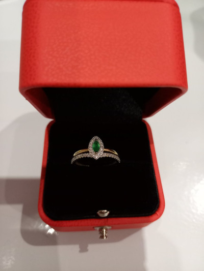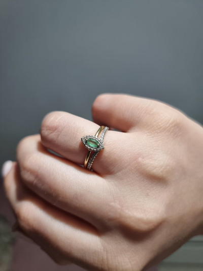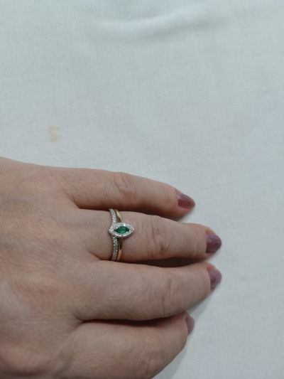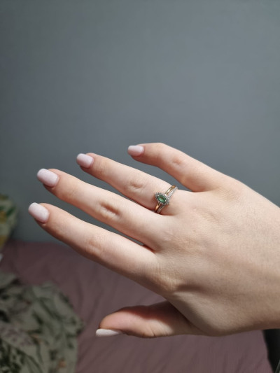 Это невероятное кольцо! Отличный вес, широкое, при этом не смотрится громозко, а наоборот воздушное. Оригинальный дизайн, у меня ассоциация с чем-то эльфийским и сказочным🧚🏼♀️🧝♀️) И вишенка на торте - природный изумруд в интересной огранке "маркиз" 🤍 маленькие бриллиантики прекрасно играют, я бы даже сказала что они занимают с изумрудом одно место в этой картине. За месяц все прекрасно, кольцо не погнулось, все камни на месте. Единственное я бы порекомендовала брать на пол размера побольше, все таки шинка очень толстая, я этот момент немного не учла