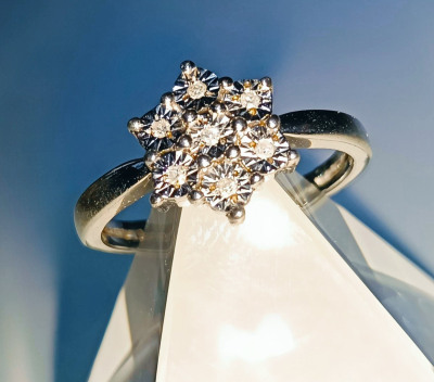 • Кольцо с 7 бриллиантами природными, 0.04 карат, огранка круг 17 граней, цвет 2, чистота 4;