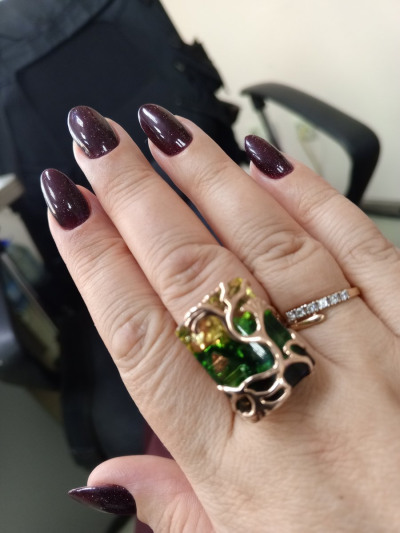 Кольцо крупное, очень интересное. Смотрится на руке красиво. Рекомендую полностью комплект для полного образа. Цвет янтаря не привычный- переход от зеленого к синему. Это очень красиво и оригинально смотрится.