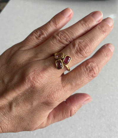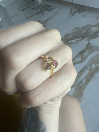 Нежное и красивое сочетание цветов желтой позолоты и розовых оттенков камней