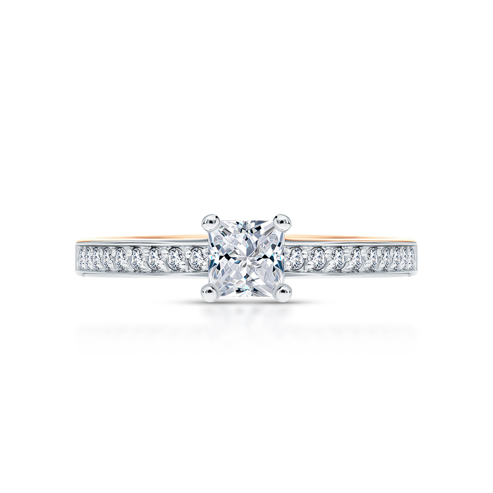 Кольцо с 1 бриллиантом природным, 0.51 карат, огранка принцесса 65 граней, цвет 1, чистота 4, тип огранки А;
