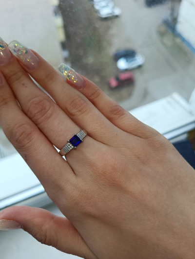Очень красивое кольцо с натуральным сапфиром! Дорожка из фианитов оттеняет сапфир! Элегантное и строгое кольцо!