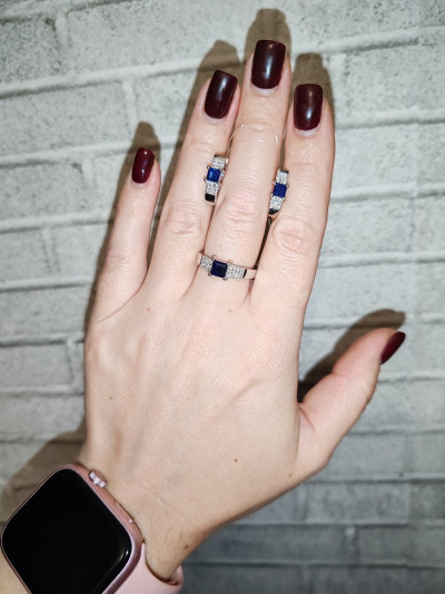 Серебряное кольцо с фианитами и сапфирами природными