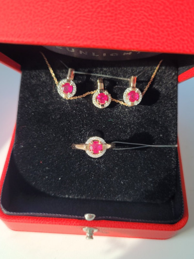 Я очень довольна комплектом, природные рубины я искала и вот нашла. Для меня это нарядный комплект, ношу по случаю. Рекомендую любителям природных рубинов.
