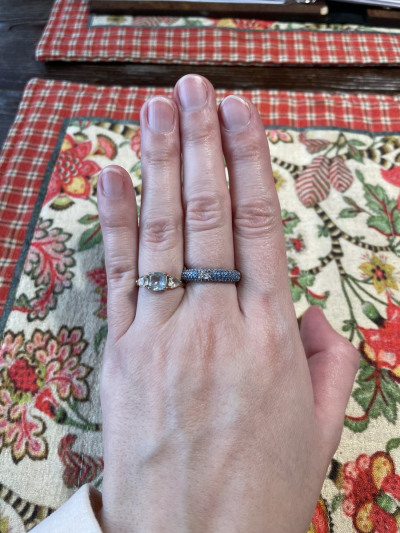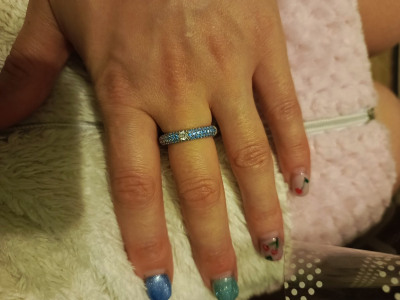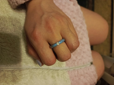 Заказали 2 кольца на гендер пати для двоих, с розовыми и голубыми камушками, приятный продавец помогла нам сохранить интригу, упаковала кольцо с камнями нужного цвета, очень трогательно отреагировала на нашу просьбу.) кольцо милое, смотрится хорошо
