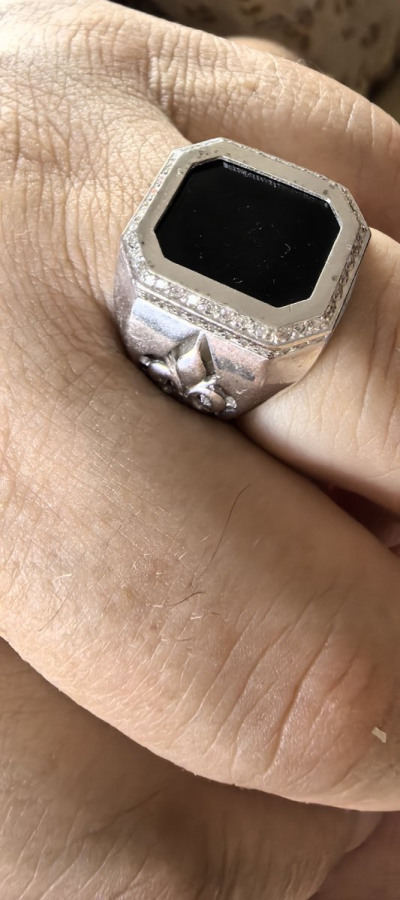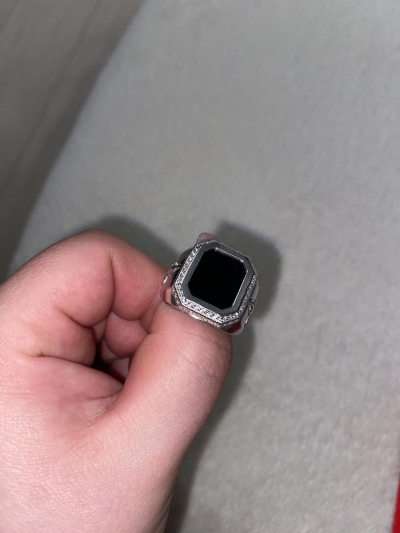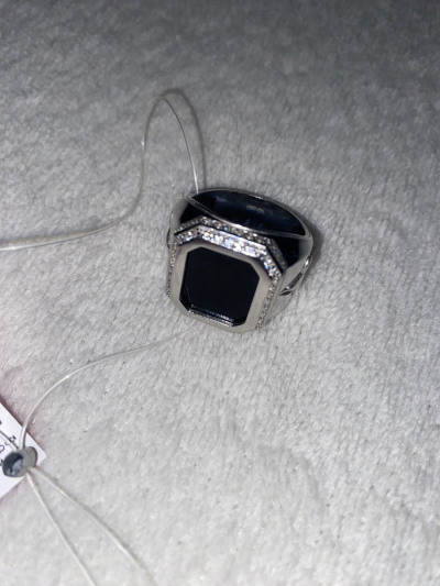 Стильное серебряное кольцо с фианитами и ониксом, объемное, тяжелое 9 гр, очень красиво смотрится, подарок папе от дочерей
